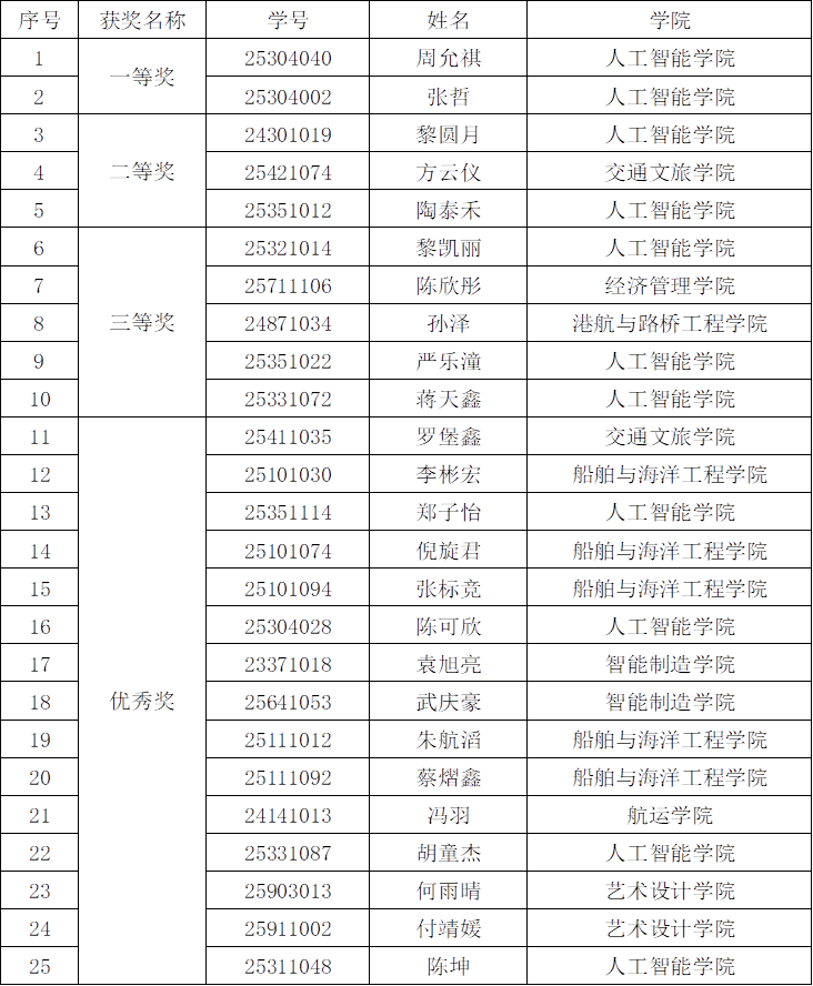 根据《武汉交通职业学院共青团“第二课堂成绩单”管理办法(修订)》中相关文件规定,给予获奖的25名学生对应的素质学分奖励。