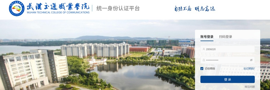 2.系统自动跳转至“武汉交通职业学院”统一身份认证平台,使用校统一认证平台
